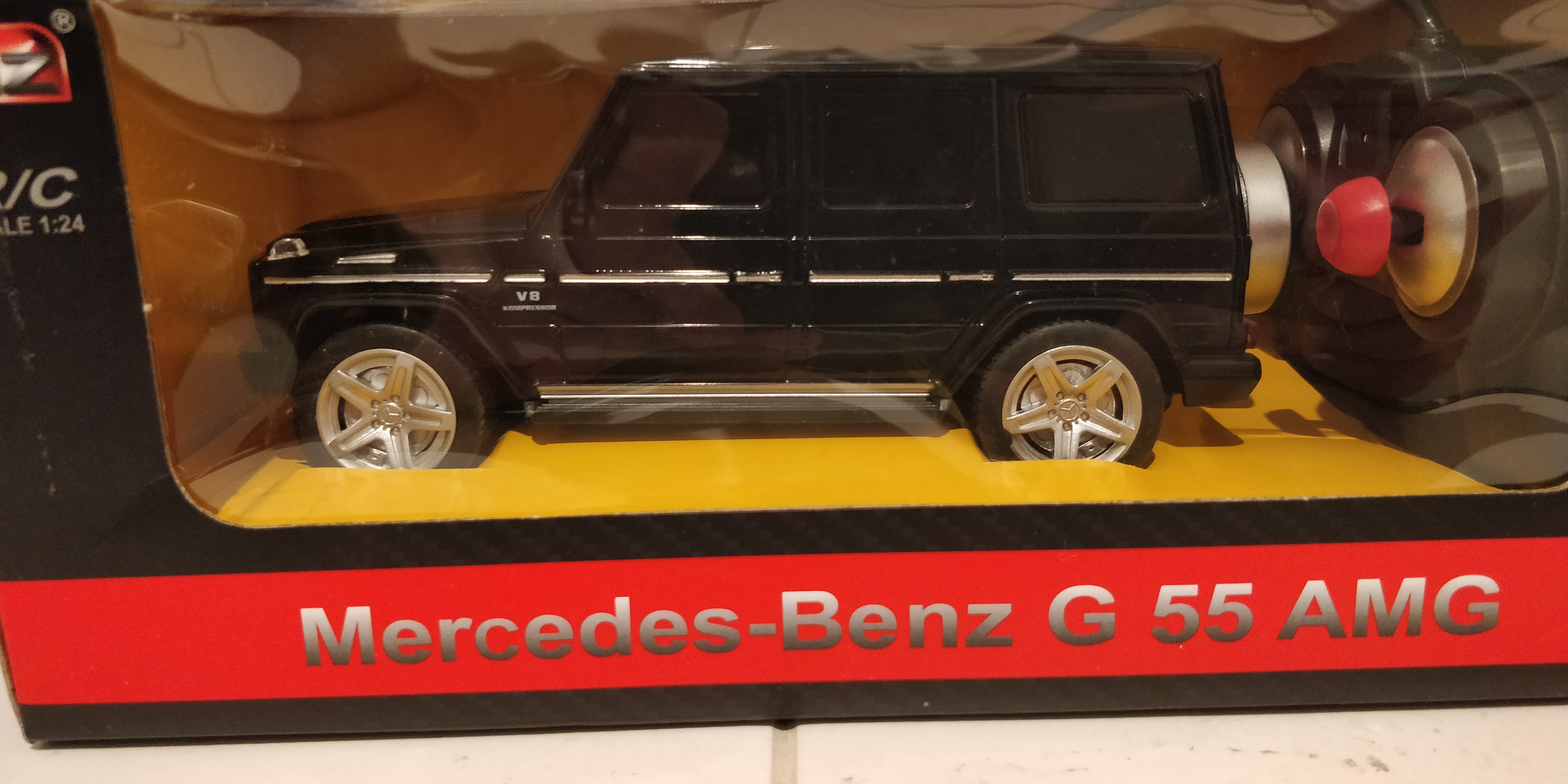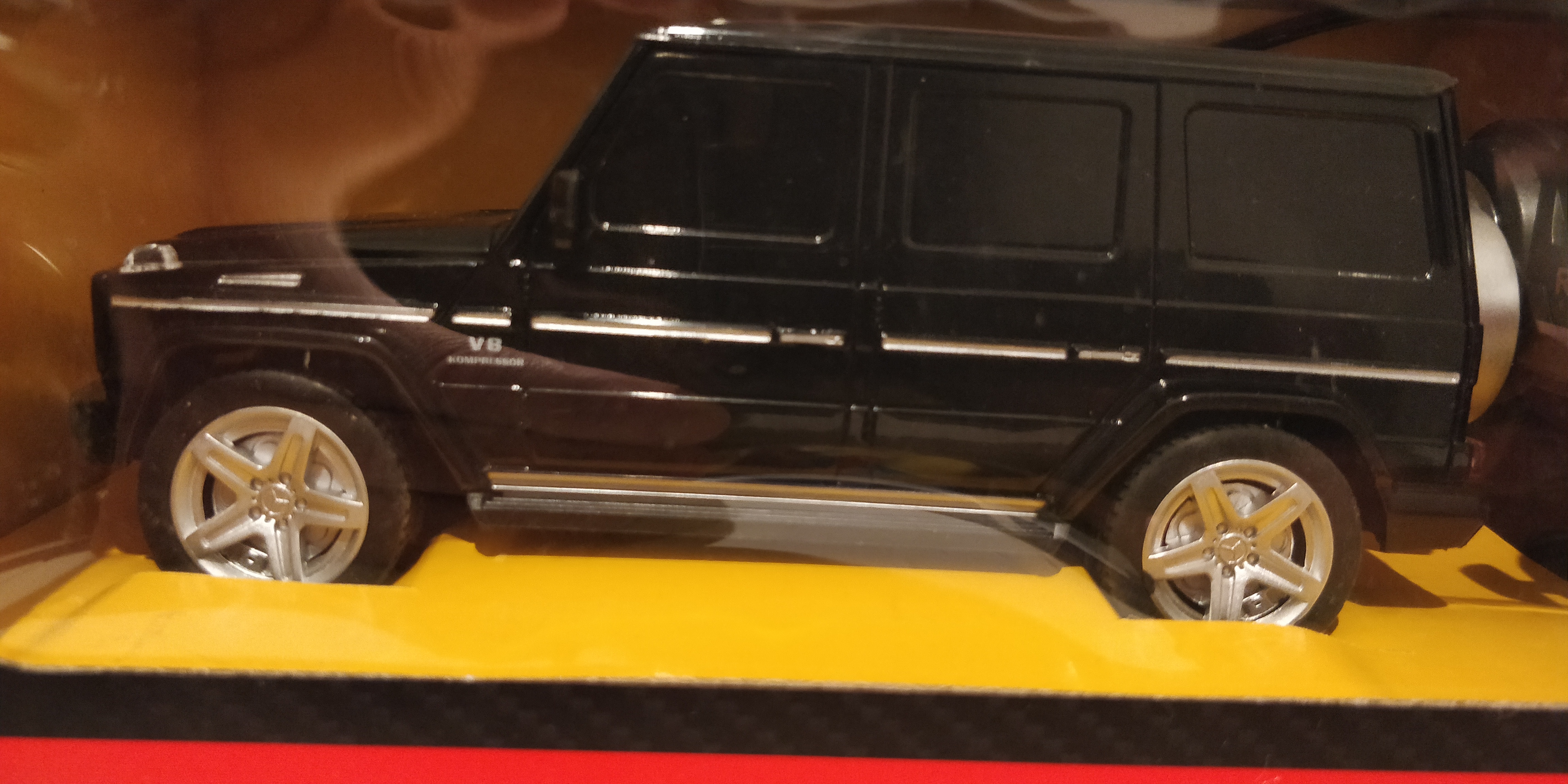 I just got one of these. It is the Rastar G63 (new generation) in 1:14 scale and radio controlled. When not being used as an RC car it makes a great display model with opening front doors and rear compartment door plus fully detailed interior. Pity it doesn't go off-road as well as the real one! On the plus side the price is a lot less than 1/14th the cost of a full size G63! To see a full overview including close-up look at all details and a bit of off-road testing, google search BlackSeaRC.