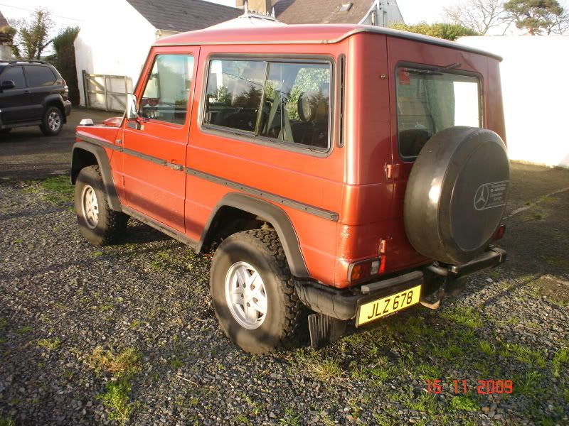 Bought this locally a few weeks ago of a guy Nigel Gilbert near Lisburn. Its a nice old jeep, clean inside and out. A few questions: I may require a Rad as there is a small leak, where would I source one in Northern Ireland. Also there is a small bit rust in each back quarter near each tail light, would like to tidy it up as the rest of the G is in great shape, is there anyone near Belfast who anyone could recommend to do a good job to this at reasonable cost. I had an old W123 300d a few years ago and ran it on biodiesel, it ran good no problems over the 18 months i had it. Will the G be happy enough on Bio? Any stations in County Down/ Belfast area anybody knows of? I only know the one at the Temple.
